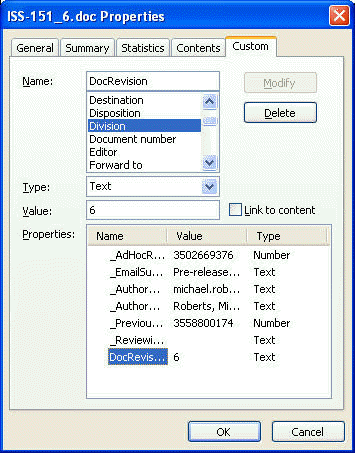 (Note - the 'Revision' document property name field is NOT case-sensitive)