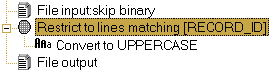 In the example above, a filter restricts lines from the main text to those matching a pattern. These matching lines get passed to the sub filter, which can be any combination of filters, a VBScript filter, a Search and Replace filter, an Output to File filter etc. The processed text then rejoins the main text. The net effect here is that the restriction filter limits the effect of the sub filters to just lines matching a pattern, all other lines are unaffected.
