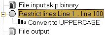 A Restrict Lines filter can be combined with a Restrict Columns filters to sub filter a rectangular block of text, for example, Searching and Replacing just inside a block of text. We also have filters to restrict CSV fields, restrict Tab-delimited fields, restrict blocks of a specified record length, and restrict matching and non-matching lines. All these restriction filters can be combined together with any number of sub filters.
