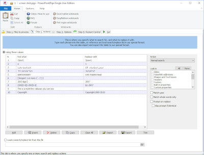 Fix Multiple PowerPoint Files in 60 Seconds!Fix broken links and search/replace across large sets of MS PowerPoint slidesWordPipe, ExcelPipe and PowerPointPipe combined demoPowerPointPipe Replace for PowerPoint is an easy-to-use tool to search and replace phrases across large sets of Microsoft PowerPoint presentations. Automatically